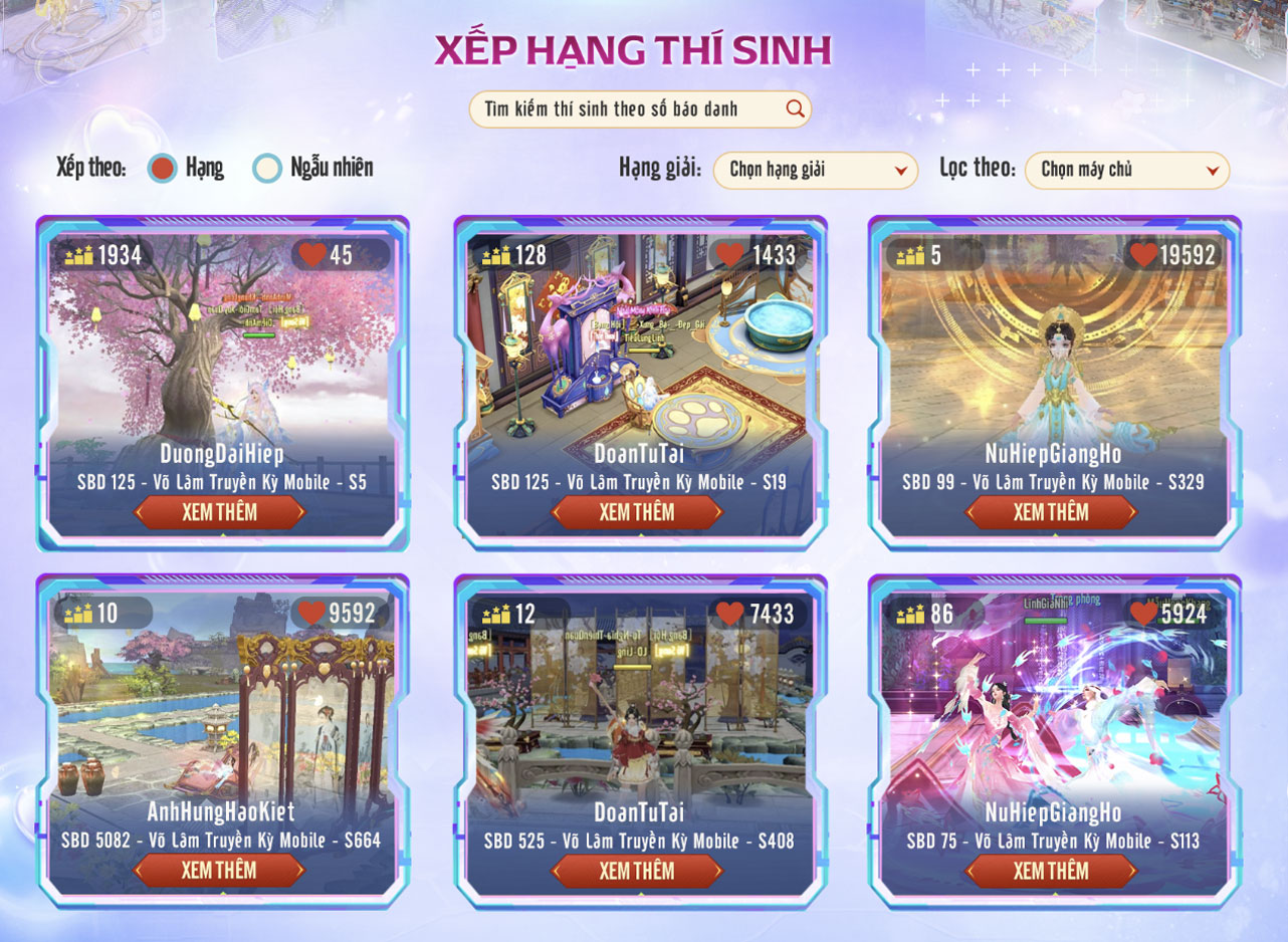 - Tại giao diện chính của sự kiện Võ Lâm Style, người chơi có thể lựa chọn xem các thí sinh mà mình muốn bình chọn.