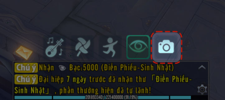 - Sau khi chọn được vị trí ưng ý trong game, người chơi chọn biểu tượng máy ảnh để tiến hành chụp ảnh.