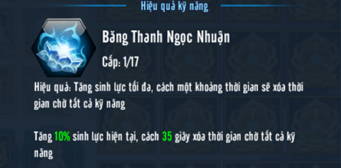 - Băng Thanh Ngọc Thuận: điều chỉnh giảm thời gian chờ xóa thời gian chờ tất cả kỹ năng.
