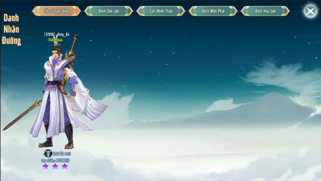 - Khi Đại hiệp đạt hạng 1 của một trong các hoạt động trên sẽ được vào Danh Nhân Đường. Ứng với mỗi một hoạt động đạt hạng 1 sẽ có 1 Sao, tối đa Đại hiệp có thể đạt được 4 sao