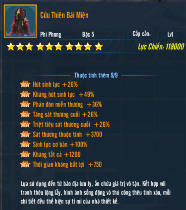 - Khi đạt 2 sao Đại hiệp sẽ nhận được Phi Phong-Cửu Thiên Bái Miện (Hạn sử dụng 30 ngày)