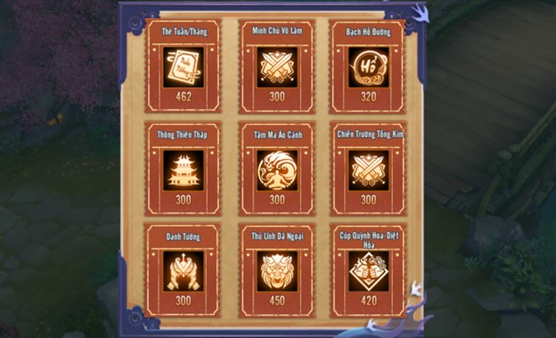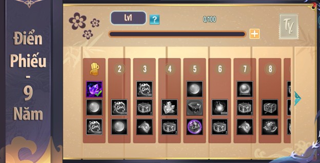 - Đạt đủ cấp điển phiếu sẽ nhận được phần thưởng. Ngoài ra, có thể nâng cấp thành Tuế Phiếu Bạc, Vàng để nhận thêm nhiều phần quà hấp dẫn như Ngoại Trang Thanh Vu Hạm Đại, Vé Rút Thưởng Sinh Nhật...