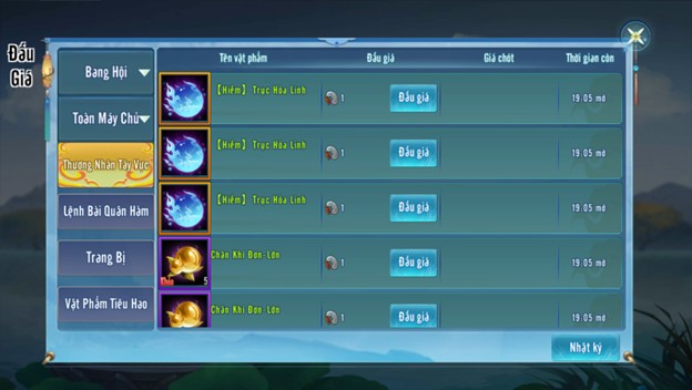 - Trục máy chủ khác nhau, vật phẩm đấu giá của máy chủ cũng sẽ khác nhau.