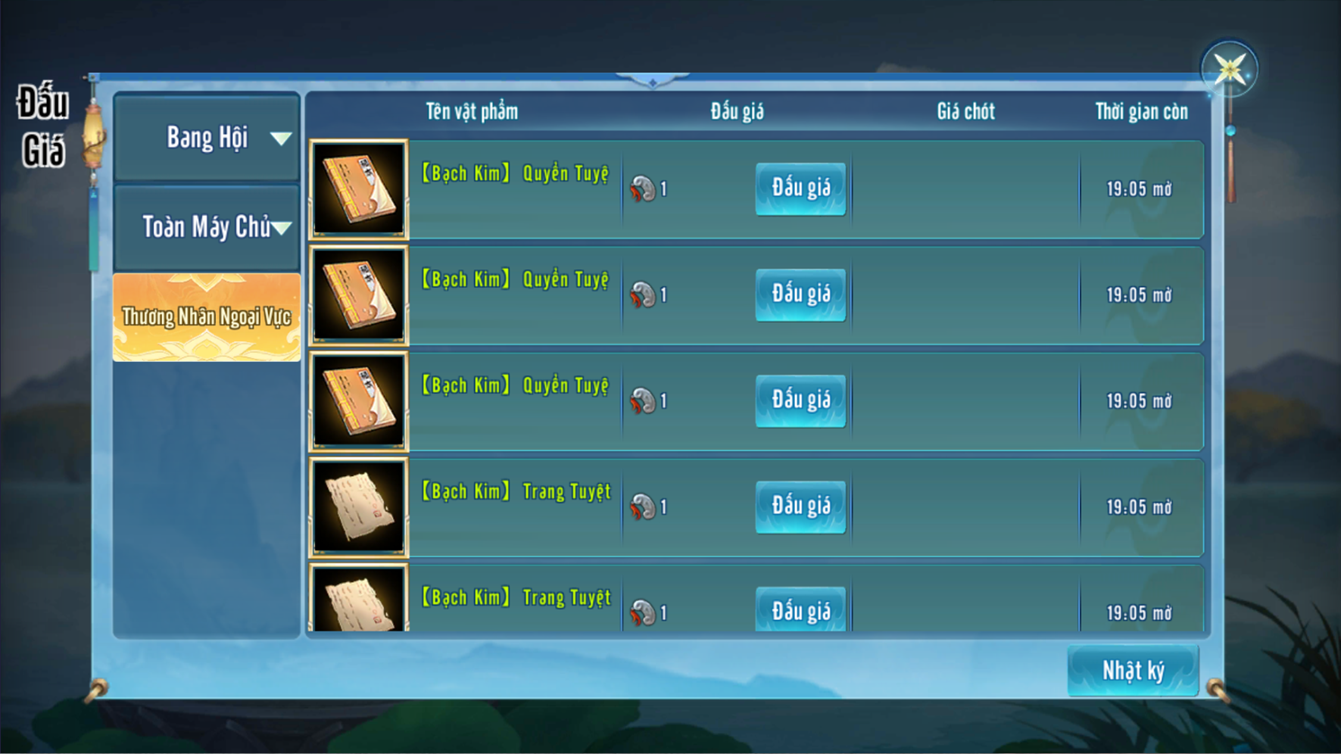 - Trục máy chủ khác nhau, vật phẩm đấu giá của máy chủ cũng sẽ khác nhau.