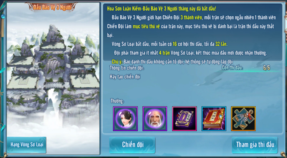 - Hoạt động giới hạn chiến đội 3 thành viên, mỗi trận sẽ lựa chọn ngẫu nhiên 1 thành viên chiến đội làm mục tiêu bảo vệ của trận này.