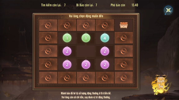 - Dò tìm manh mối: Khi vào Hang Không Thưởng, bạn sẽ nhận được Mảnh Bản Đồ tiết lộ số lượng Hang Thưởng nằm trong 8 ô xung quanh.